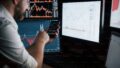パソコンのFXチャートを見ながらスマホを操作し、FXと学業・バイトを両立させようと奮闘する大学生トレーダーのイメージ画像 FX初心者